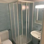La Villa Casa Enrica - bilocale a Solduno con giardino dispone di un bagno con un bagno con WC separato e una doccia. Ci sono anche asciugacapelli e asciugamani.